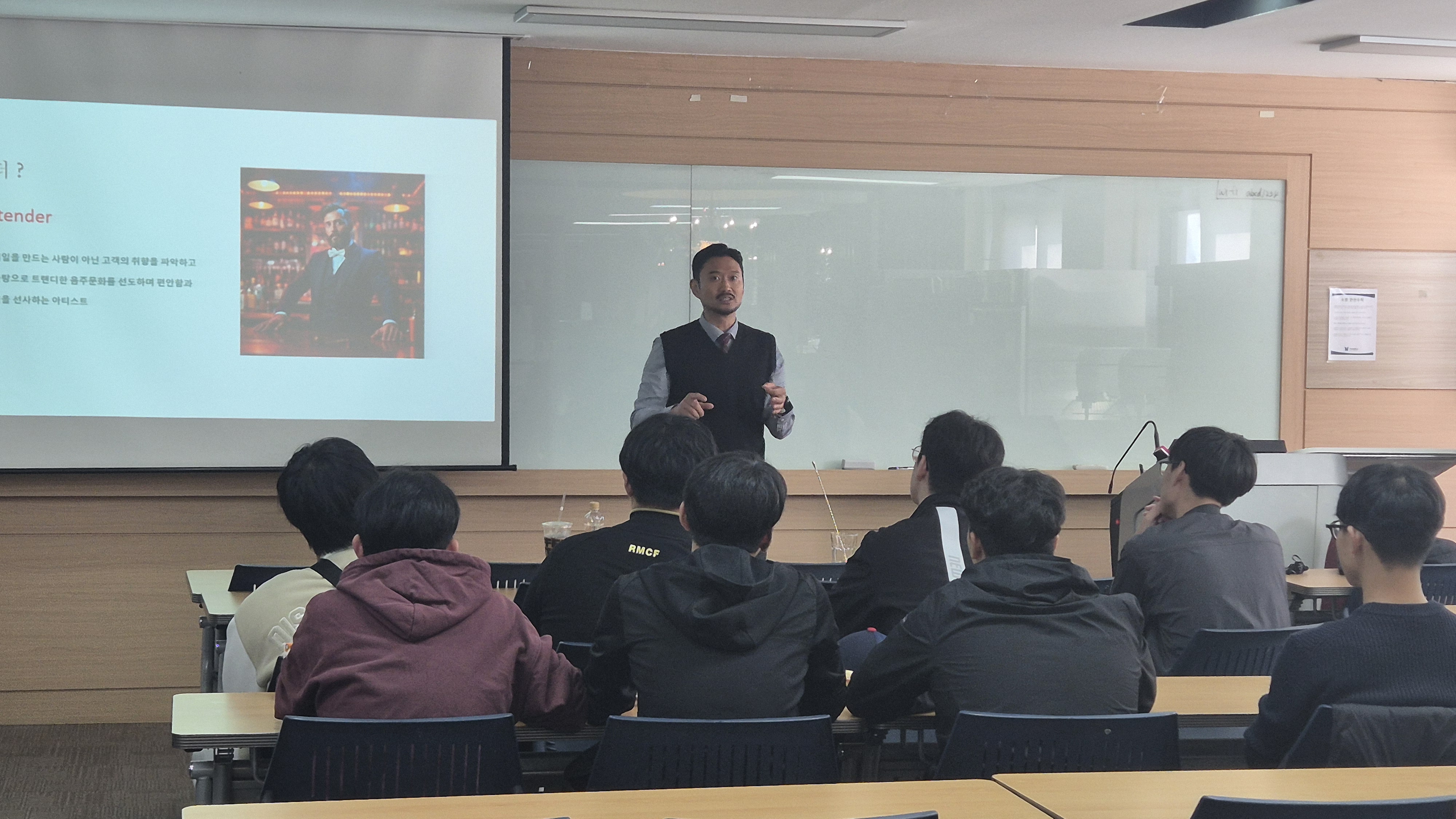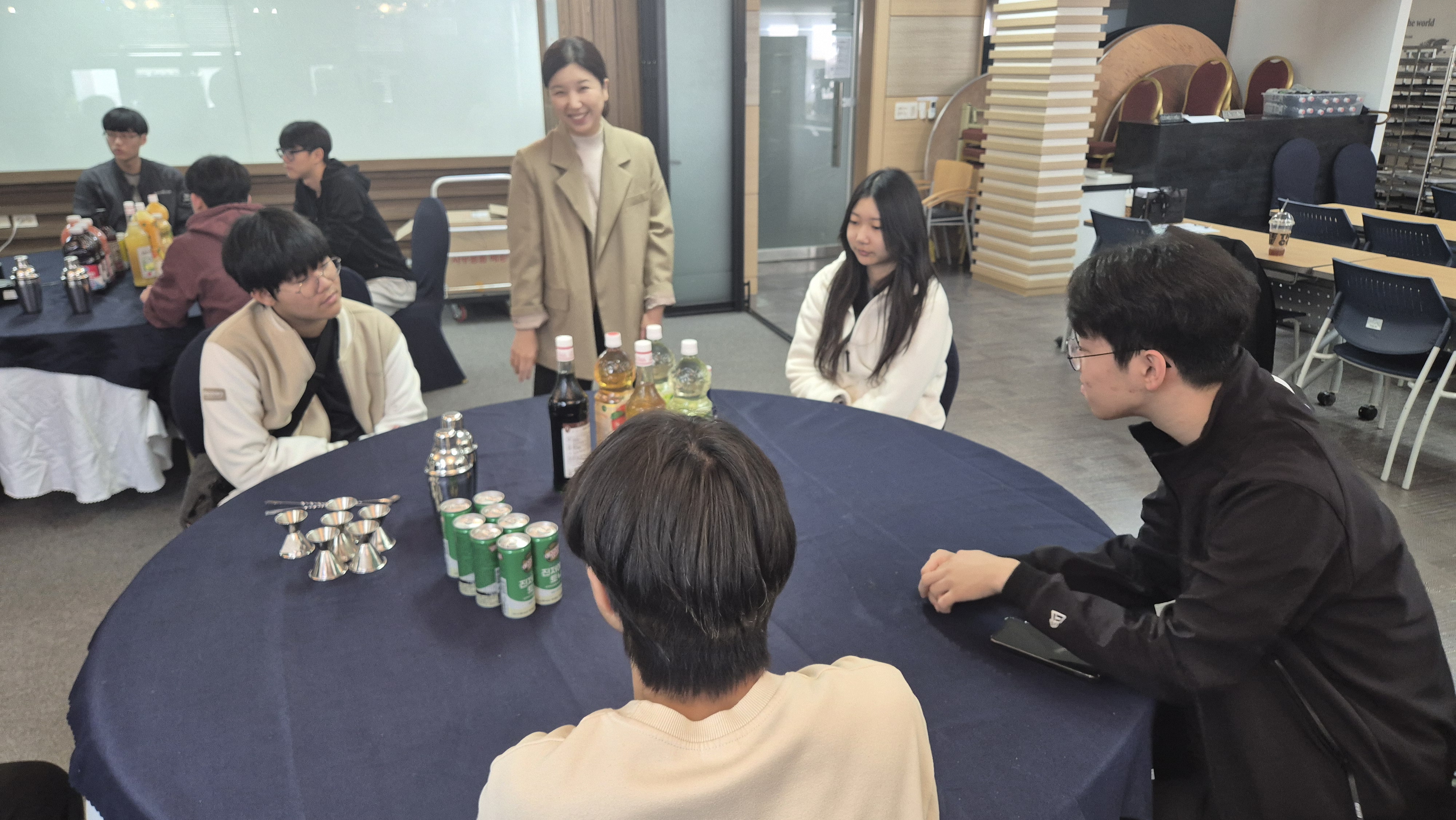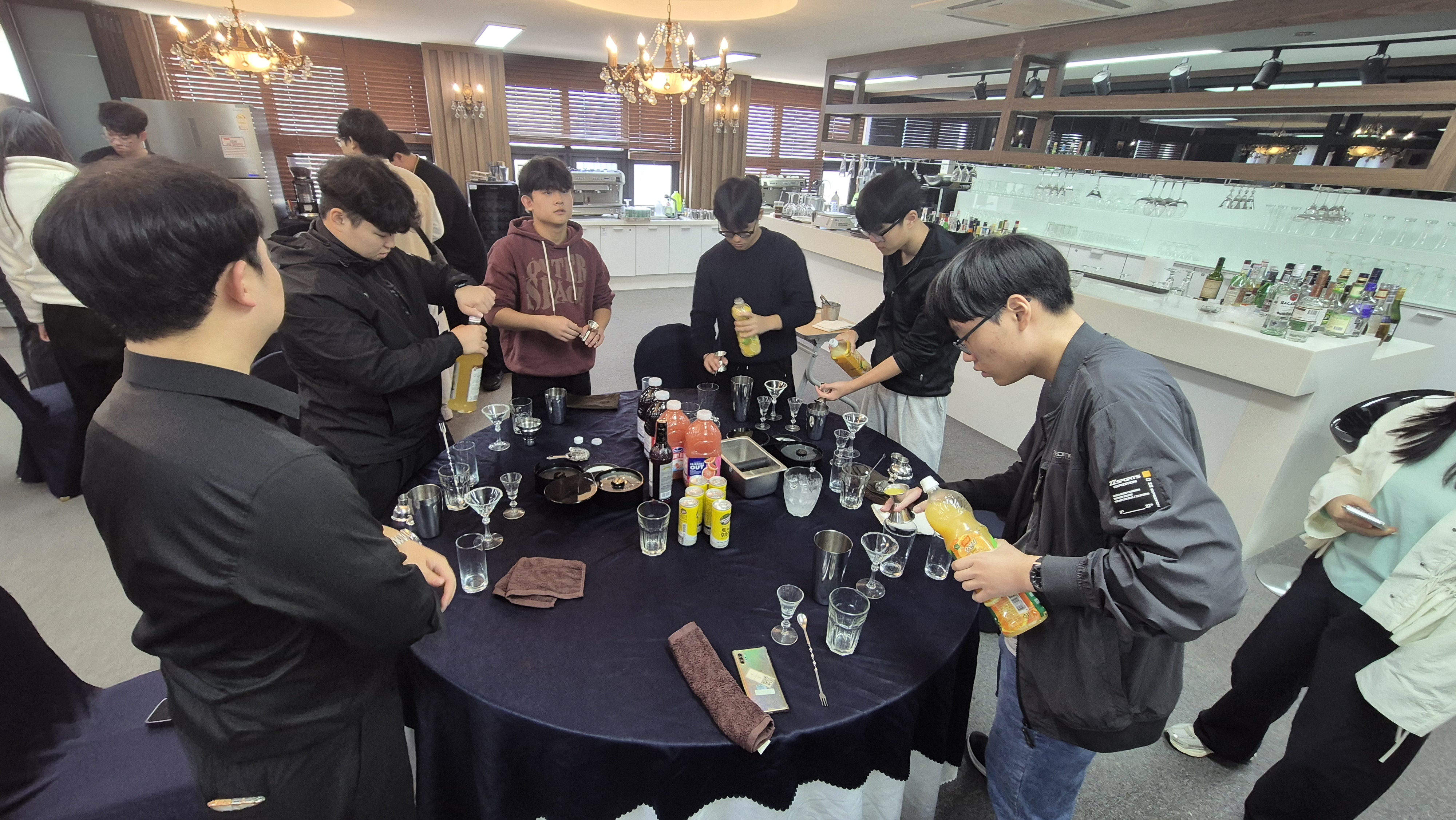 안녕하세요. 한라대학교 호텔항공외식경영학과입니다. 저희 학과는 원주 관내 1학년 대학연계 프로그램을 진행했습니다. 원주고등학교에서 온 1학년 학생들과 함께 프로그램을 진행했습니다. 먼저 학생들과 학과 강의실 투어를 진행했습니다. 그리고 박수용 교수님께서 '바텐더' 직업 소개와 칵테일에 대해서 간단하게 특강을 해주셨습니다. 이후로는 간단하게 여러 칵테일 기법을 배우고 직접 칵테일을 만들어보는 시간을 가졌습니다. |