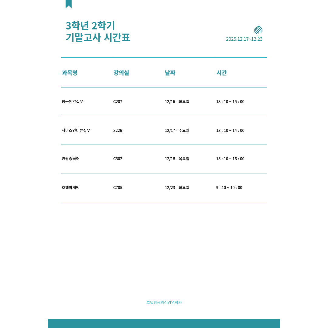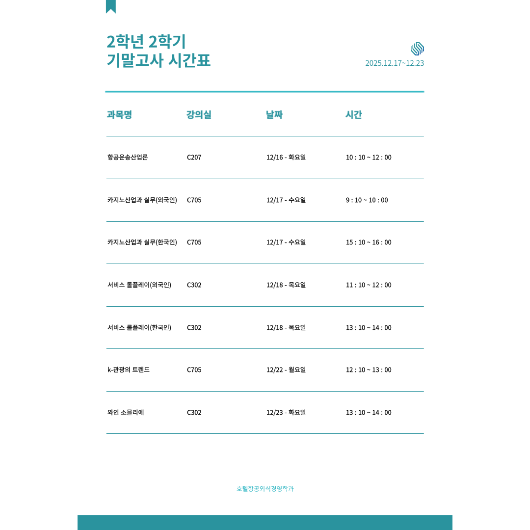 2025학년도 2학기 기말고사 시간표